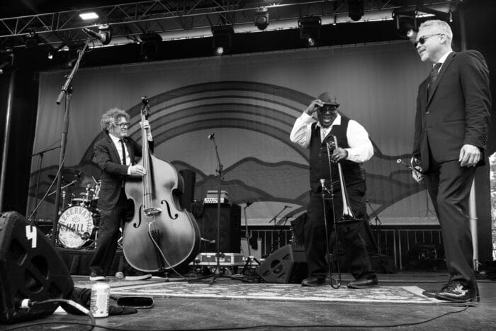 Kaukonen then returned for his own performance with fellow guitarist John Hurlbut. They delivered material that spanned Kaukonen’s career, before enlisting the audience on a concluding “This Land Is Your Land” sing-along. That same song later recurred during the animated appearance by the Preservation Hall Jazz Band.