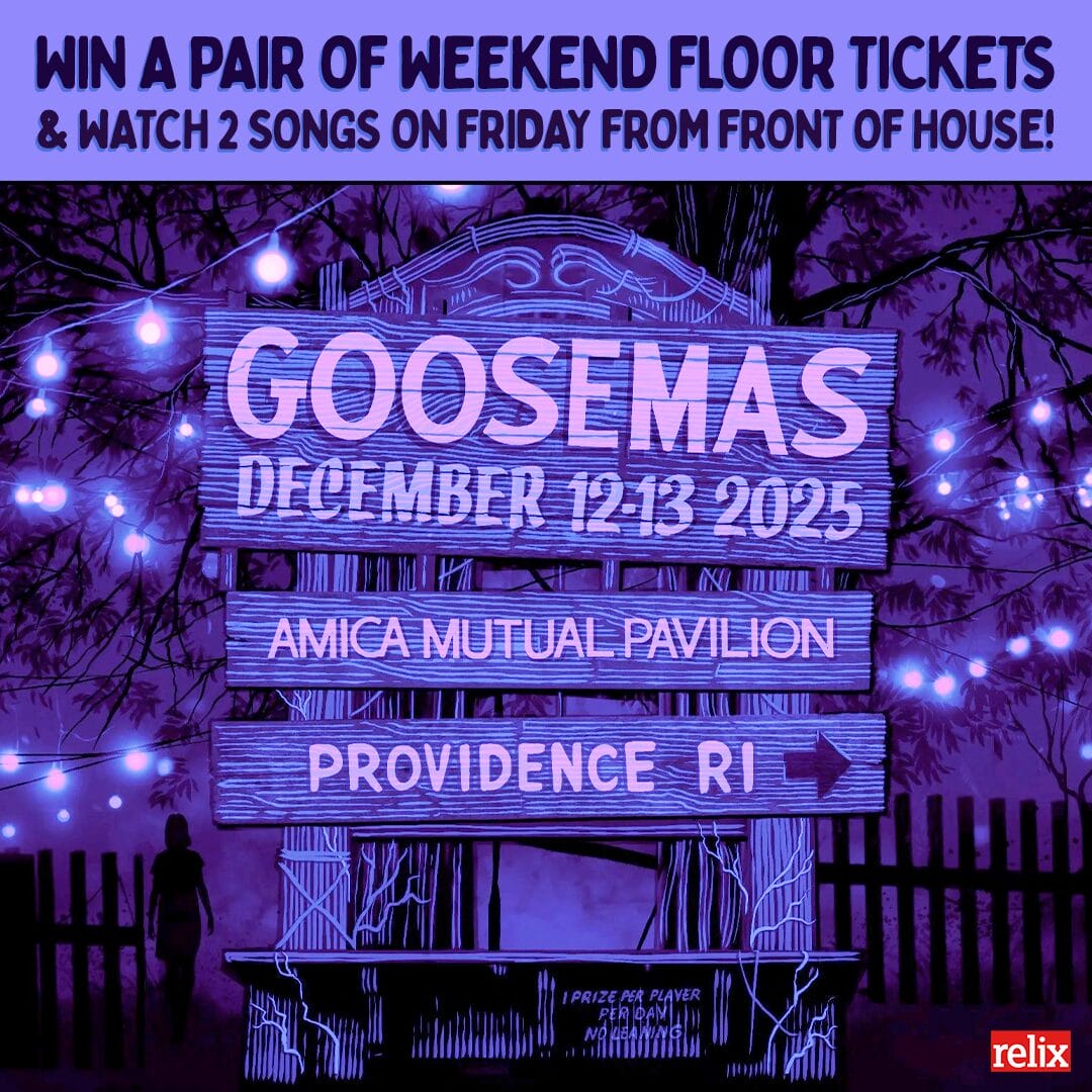 We’re giving one lucky fan two 2-day floor tickets to Goosemas at the Amica Mutual Pavilion in Providence, RI on December 12 & 13, 2025 plus an unforgettable upgrade: watch two songs from Friday night’s show at Front of House with a perfect view of the band and the crowd.