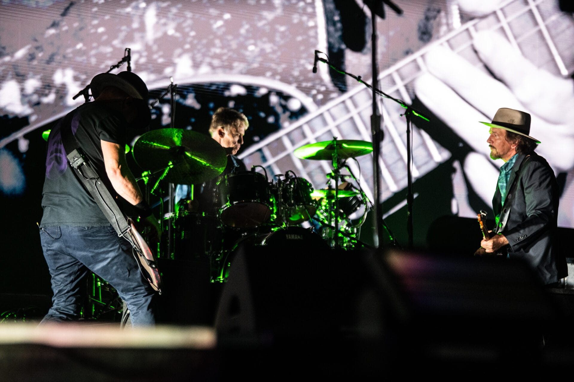 Vedder, who sat side-stage for the majority of the three-day series, was clearly inspired by the openers for his first Pearl Jam set, as he worked a whole verse from DEVO’s “Beautiful World” into the tail-end of “Daughter” and teased the band’s version of “(I Can’t Get No) Satisfaction in “Who Ever Said.” Beyond essentials like “Porch,” “Corduroy” and “Yellow Ledbetter” and now fully-realized Dark Matter cuts like “Scared Of Fear” and “Wreckage,” Pearl Jam worked in some jaw-dropping rarities, with an eight-year bust out of “Future Days” delivered solo by Vedder and a debut staging of “Whale Song, pulled from a 1999 benefit album for the Surfrider Foundation and featuring its originator Zach Irons. A true highlight arrived with a cover of Neil Young’s “Rockin’ in the Free World,” which featured a chorus of performers from Friday.