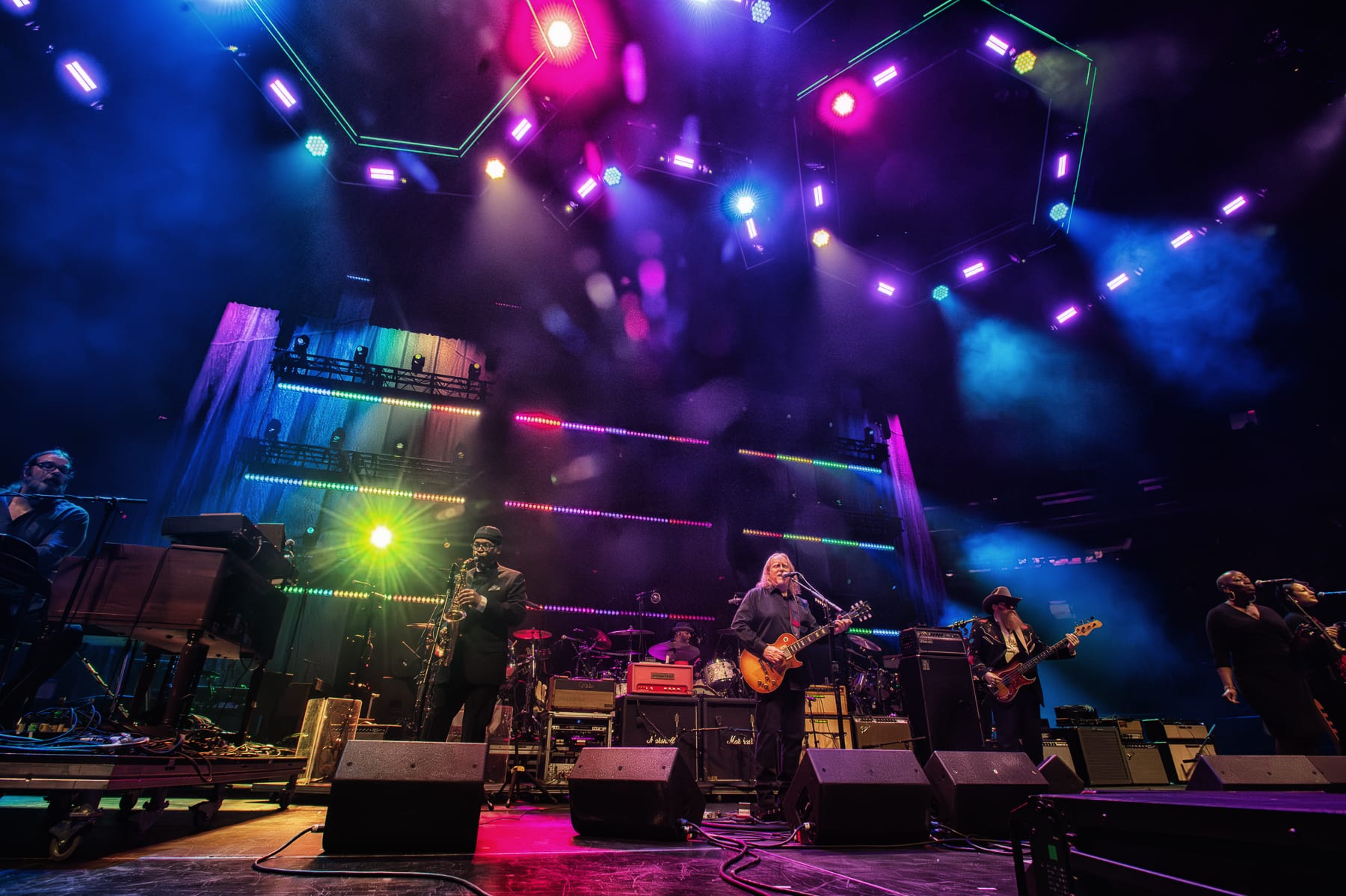 The Warren Haynes Band stepped up next to issue five songs; Haynes was backed by a variation on his new WHB lineup, featuring bassist Kevin Scott, drummer Terence Higgins, saxophonist Greg Osby and keyboardist Matt Slocum in the seat recently filled by John Medeski, as well as backing singers Saundra Williams and Mayteana Morales. This top-tier team delivered rousing renditions of recent Haynes originals “Man in Motion” and “This Life as We Know It” (the latter featuring Randolph) before broaching the Grateful Dead’s “Shakedown Street,” with the added force of doubled percussion from Joe Russo.