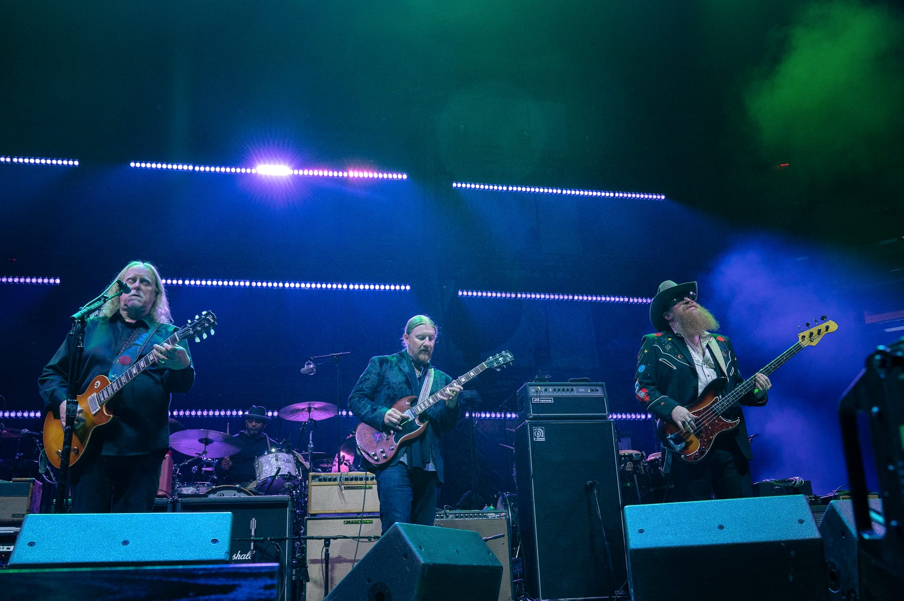 To conclude the frame, the band invited a final sit-in from Matthews, who brought his acoustic guitar and rich harmonies to Bruce Hornsby’s “The Way It Is.” As the band and their legendary guest departed from the stage, Matthews brought the crowd to a roar again with one last “Gooooooooooose!” As the stage was being reset for the next band, Tedeschi, Trucks and Haynes strode out to the spotlight for Tedeschi’s 2006 original “700 Houses.” In the chorus, the trio repeated, “What can be done? Another storm to overcome.”