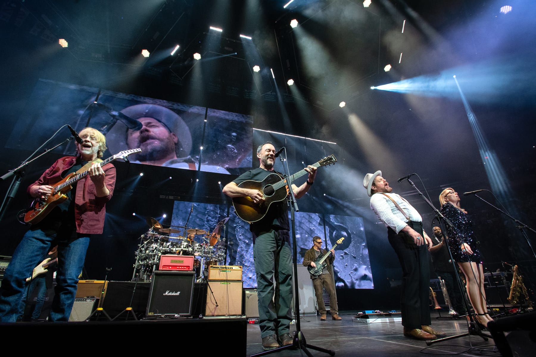 Once again, Matthews emerged after Rateliff and company had left the stage, this time bringing the crowd to a potently emotional moment with a duet with Haynes on James Taylor’s “Carolina In My Mind.” The duo kept on this stripped-down tone with a cover of Tom Petty’s “Southern Accents,” then Matthews invited iconic Phish frontman Trey Anastasio to complement his Phish essential “Waste.”