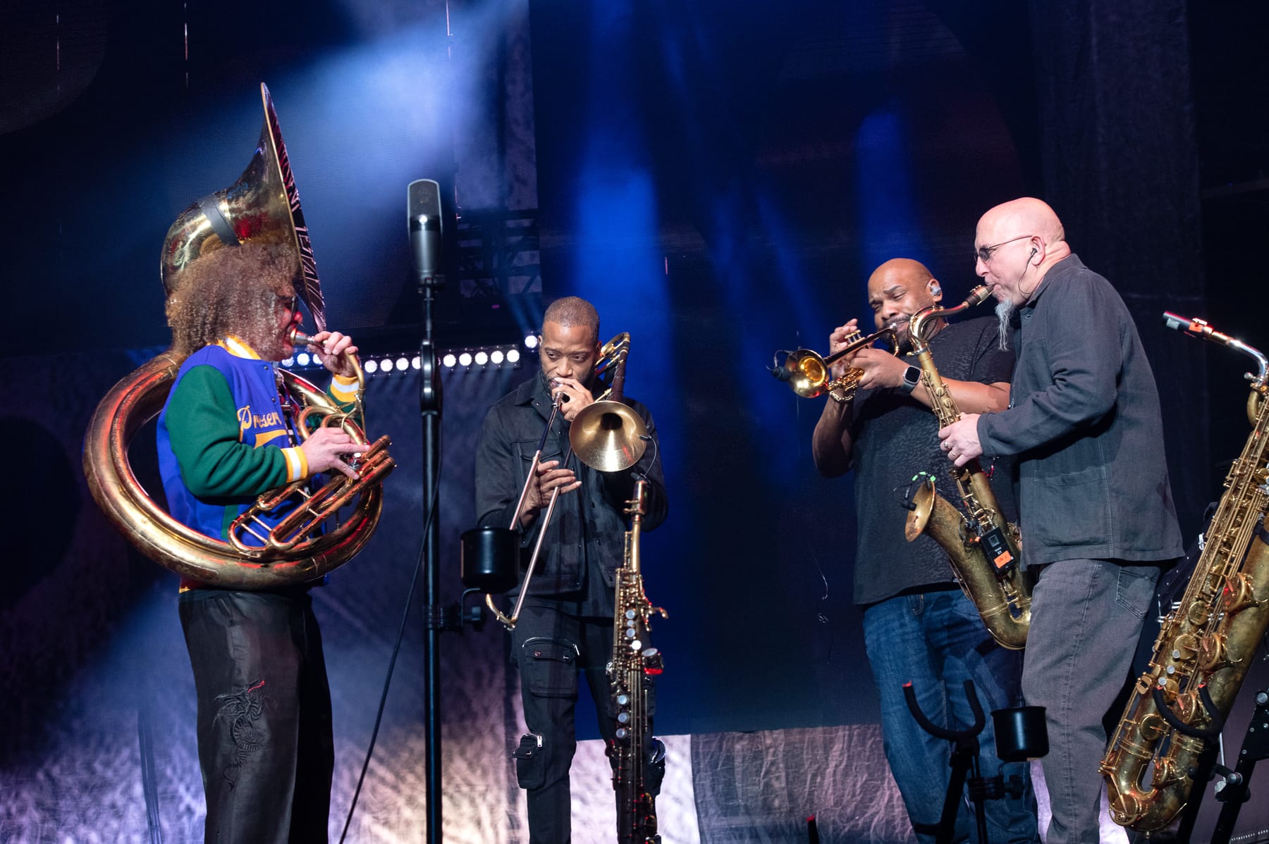 Matthews moved into his full-band set with a true crowd of accompanists, tapping Anastasio, Rateliff and Tedeschi for “The Weight”; Matthews memorably lit up a cover of The Band’s classic with Tedeschi and Trucks at The Garden last November. A ripping sprint of five DMB classics followed en route to Jimi Thing, which was elevated with improvisation from Trombone Shorty and Jaffe, who also brought the funk to an exuberant go at The Commodores’ infectious “Brick House.” Anastasio then emerged again for a medley of “Lie In Our Graves” and Eric Clapton’s “Wonderful Tonight,” with Haynes and Trucks adding their Southern rock credentials to the mix for the Allmans’ “Melissa.”