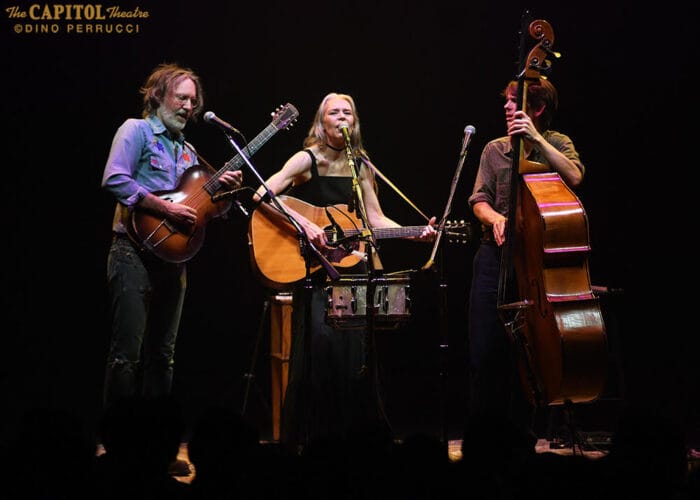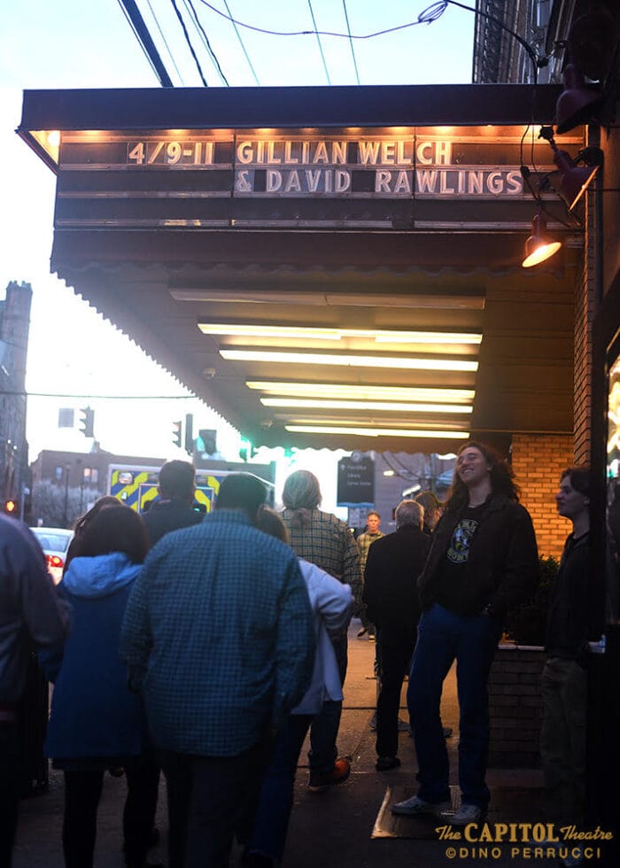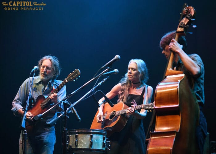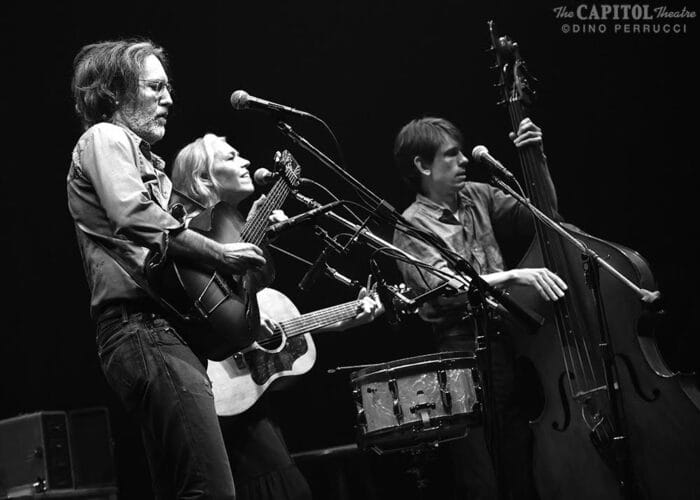 On April 10, musical twosome Gillian Welch and David Rawlings took the stage at the historic Capitol Theatre in Port Chester, N.Y. The concert served as the midsection of a three-night venue-specific stand for the ensemble, who are currently honoring the Grateful Dead’s songbook with particular emphasis on their early ’80s acoustic chapter via the double live LP, Reckoning. On the road, the pair has welcomed support from standup bassist Paul Kowert (Punch Brothers), who helped them during their Friday night debut, a first-ever cover of the Dead’s “New Speedway Boogie.”