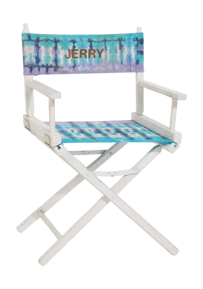 Personalized tie‑dye director’s chair commemorating 40 Grateful Dead performances at Madison Square Garden, printed with Jerry’s name and show stats. Est: $2,000–4,000