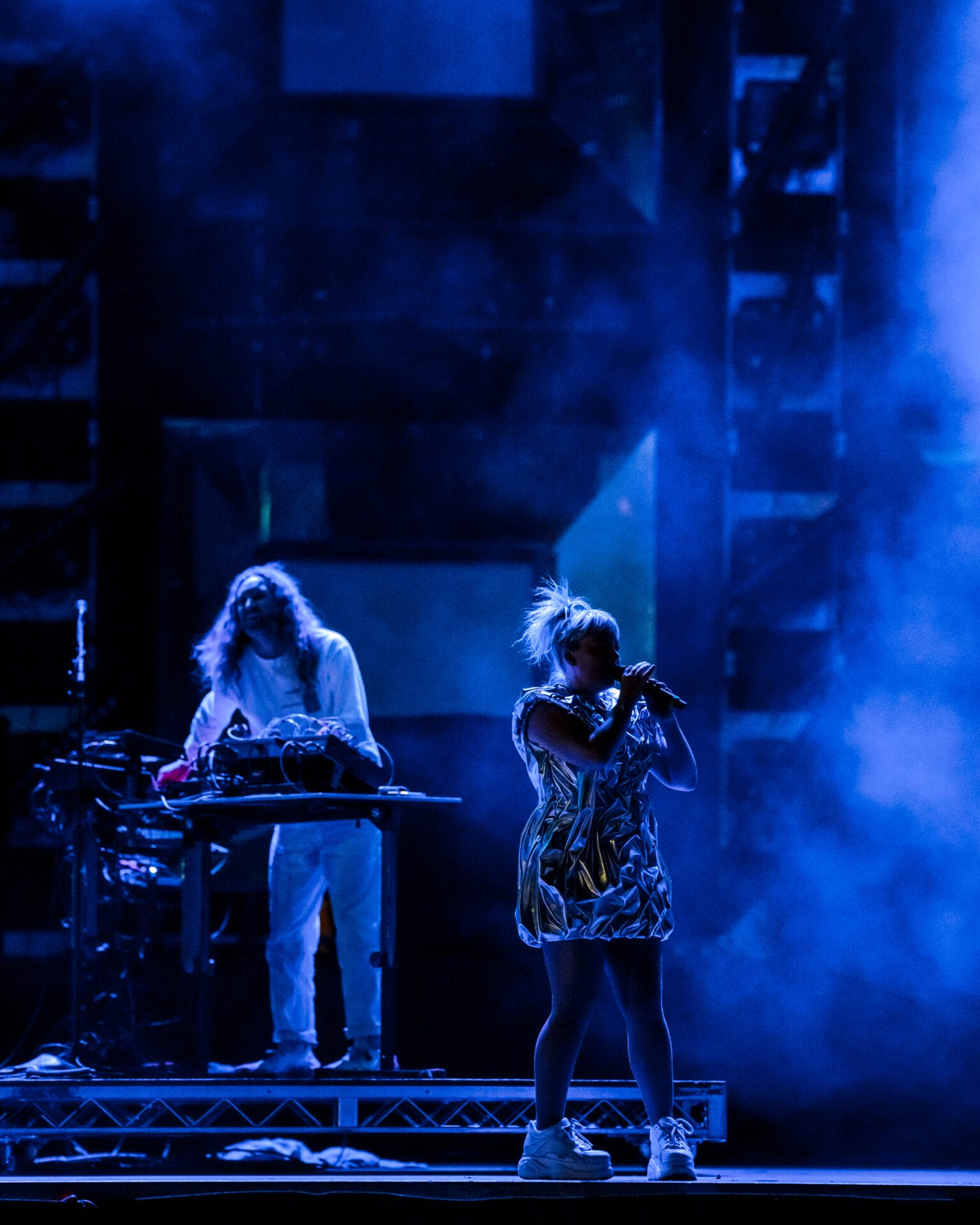 The electrifying energy that Sylvan Esso left was waiting onstage for the legendary French touch duo Justice, whose headline performance was heralded by a warning for the intense effects to come. Gaspard Augé and Xavier de Rosnay wordlessly walked to the center of a titanic array of lights and screens and quickly commenced a rapid-fire set that merged their Grammy-winning 2024 album Hyperdrama with selected favorites from their broader canon, including “Stress,” “Audio, Video, Disco” and “We Are Your Friends.” Coupled with mesmerizing effects, the electronic veterans’ festival finale was a nonstop party that had listeners jumping, thrashing and “D.A.N.C.E.”-ing until every last drop of energy was spent.