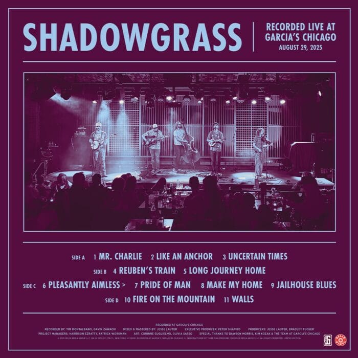 Known for their fusion of traditional bluegrass, prowess in composing their own material, and a dynamic repertoire of cover songs, Shadowgrass showcases the best of their music on Shadowgrass – The Relix Session (Limited Edition 2-LP Vinyl). The live collection was tracked at Garcia’s Chicago and is available for pre-order, with an expected ship date of December 8, 2025.