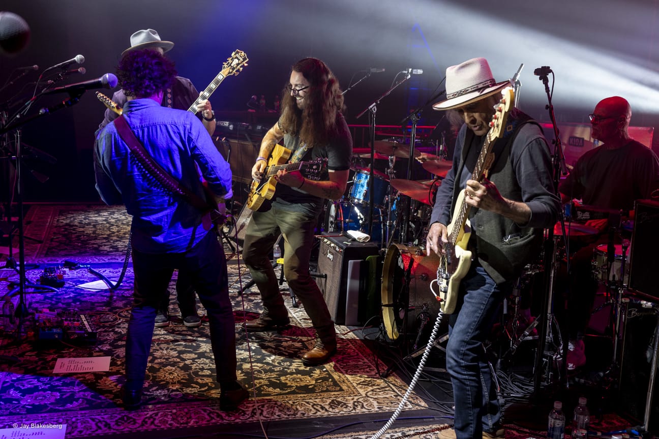 After an outstanding Thursday night that brought appearances from Bill Nershi on “Friend of the Devil” and “Cold Rain and Snow,” Peter Rowan on “Midnight Moonlight” and “Panama Red” and Stephen Stills on four tracks including “Althea” and “For What It’s Worth,” Friday’s program commenced with an exhilarating twist on a classic sequence. Night two’s starting lineup featured guitarists Duane Betts and Tom Hamilton, bassist Trevor Weekz, drummers Cody Dickinson and Nathan Graham and backing vocalists Kanika Moore, Elliott Peck and Nicki Bluhm, all following bandleader and guitarist Grahame Lesh. Together, the ensemble set off the show with a suite of “Help on the Way,” “Slipknot!” and “Franklin’s Tower,” seamlessly trading the spotlight and weaving a treatment of the Allman Brothers Band’s “In Memory of Elizabeth Reed” into the second phase of the classic Blues for Allah triptych.