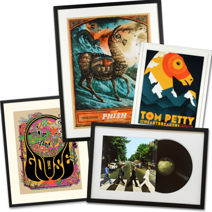 Elevate concert magic, music memorabilia and other special moments through custom framing. Each frame is conveniently ordered online, handcrafted in the US, and delivered right to your door. Bring gig posters and musician photos to life on your walls, or create a personalized gift for your favorite music fan.