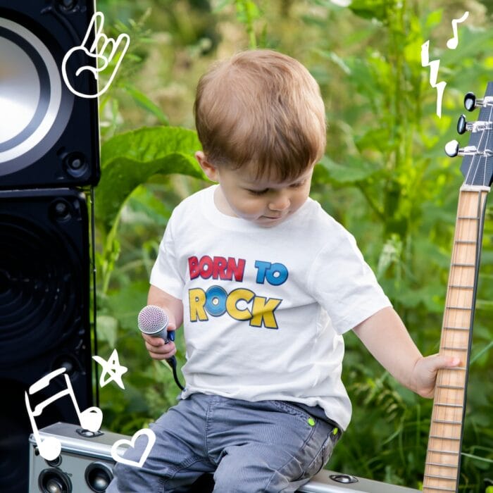Baby onesies, toddler t-shirts, and music-themed kids’ wear from The Rock and Roll Playhouse. Bright, playful styles for the next generation of music lovers.
